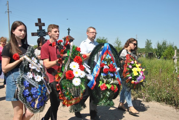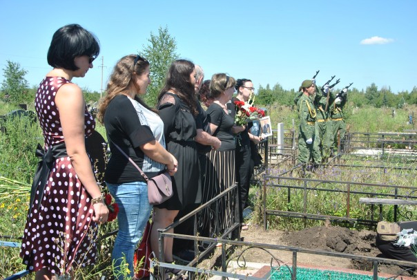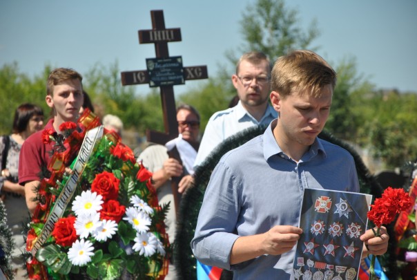 Церемония захоронения в соответствии с военными традициями была организована при поддержке Министерства иностранных дел Республики, общественной организации «Мемориал» и Общественной палаты ЛНР. К могиле ветерана был возложен венок от Главы ЛНР Леонида Пасечника. Первым, кто обратился ко всем присутствующим на церемонии, стал член Общественной палаты и также член правления ОО «Мемориал» Сергей Белов.