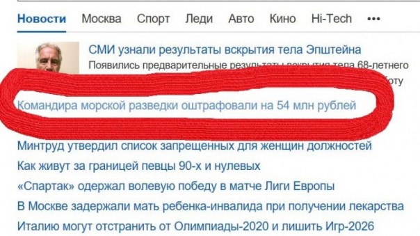 «Командира морской разведки оштрафовали на 54 миллиона рублей».