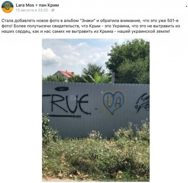 Недавно в среде адептов секты «Крым — це Украина» и вовсе случился праздник: в проукраинской группе «пан Крым»в альбоме «творчество душевнобольных», тьфу, «всюду знаки» появилось 501-ое фото.