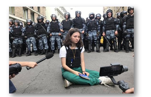 Что мы имеем в итоге? Девочке 17 лет – она пока не может голосовать. Живет в Подмосковье – выборы в Москве ее, по большому счету, не касаются. Использует методы протеста, до которых бы вряд ли додумалась сама. Например, та же сидячая забастовка около ОМОНа была недавно проведена в Гонконге.