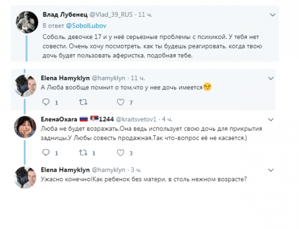 Но какое дело Любе до человечности. Подобное она проделывала уже не раз. В ее акциях участвовала бабушка-колясочница, которую на митинги привозил внук, соратник Соболь. В чате «Команда Соболь» он предложил привезти свою родственнцу, предположив, что такая история вызовет резонанс.