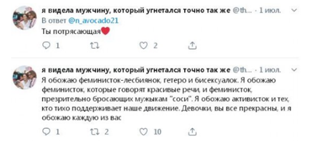 Поддерживает феминизм, признаваясь всем феминисткам в любви. Впрочем, с психологической точки зрения все это очень легко объяснить. У девочки масса комплексов. Их она старательно пытается загладить, участвуя в протестах. Хотя куда более эффективно было бы привести себя в порядок и углубиться в образование.