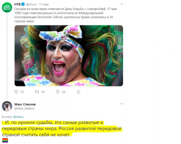 Ранее он тоже успел отличиться, когда заявлял, что Россия не является продвинутой страной, потому что тут не легализовано движение ЛГБТ. Он также высказывался о российских храмах, где, по его мнению, можно только в покемонов играть. Ко всему прочему наплевал на ветеранов ВОВ, предложив прикрепить фото «Бессмертного полка» к фаллоимитатору.