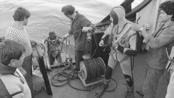 Водолазы спасательного судна «Аметист» перед погружением для поиска пропавших после гибели круизного лайнера «Адмирал Нахимов». 7 сентября 1986 года