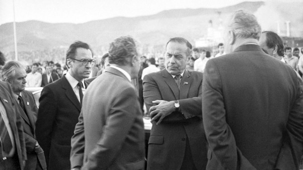 Председатель правительственной комиссии по ликвидации аварии круизного лайнера «Адмирал Нахимов», член Политбюро ЦК КПСС, первый заместитель Председателя Совета Министров СССР Гейдар Алиев среди членов комиссии. 7 сентября 1986 года