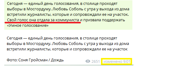 Неадекватка Соболь в очередной раз оконфузилась. Она сходила на избирательный участок и проголосовала за коммуниста. Об этом написали на «Дожде», правда, позже подробности быстро удалили.