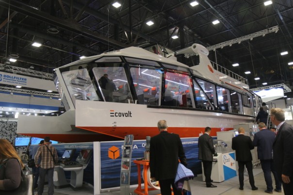 Зарядную станцию тоже производит МСА, она может быть установлена как на берегу стационарно, так и помещена на плавучую платформу, аналогичную той, на которой и построен Ecovolt.