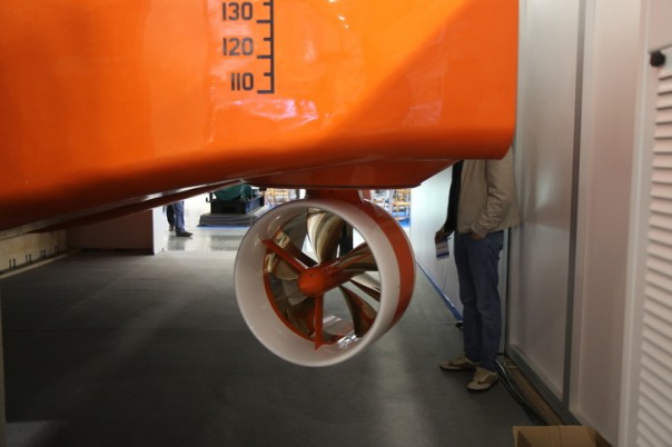 На судне нет никого машинного отделения. Оба двигателя находятся просто в воде целиком. Никаких механических приводов, никаких редукторов, никаких коробок передач! На фото ниже это вся двигательная установка судна. Одна из двух. То есть минимум нагруженных деталей, ломаться тут практически нечему, а значит, у судна должна быть потрясающая надежность.