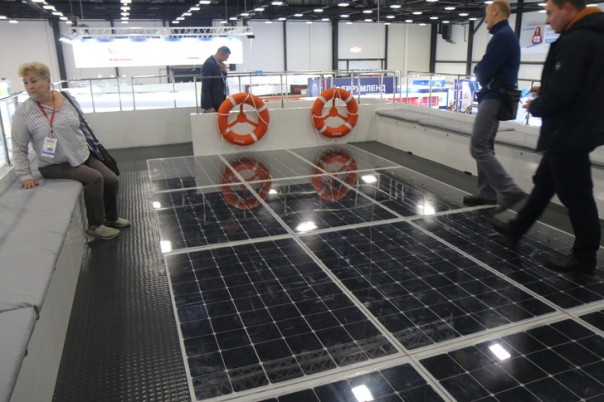 Кстати, пол верхней палубы заодно и солнечная батарея. Её для движения судна, конечно недостаточно, но вполне хватает для внутренних потребностей, что снижает потребление энергии от аккумуляторов.
