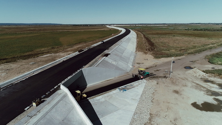 В Амурской области в районе международного моста РФ-КНР завершается строительство автодороги 2 категории с укреплением откосов монолитными железобетонными плитами. Дорога с такими техническими характеристиками строится в области впервые. Проезжая часть поднялась над уровнем земли на 6 метров. Именно такова высота насыпи. Дорога протянулась и над пятью мостовыми объектами: тремя путепроводами и двумя сооружениями для связи разобщенных территорий.