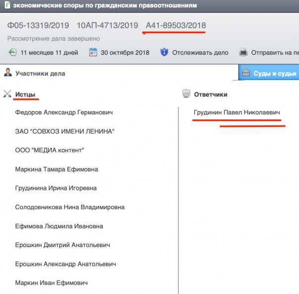 Истцами выступили шесть человек, которые потребовали пересмотра февральского решения суда по этому делу. Тогда суд отклонил их иск о выплате Грудининым компенсации в размере 2,1 млрд рублей, включая так называемую упущенную выгоду.