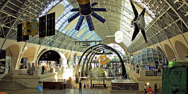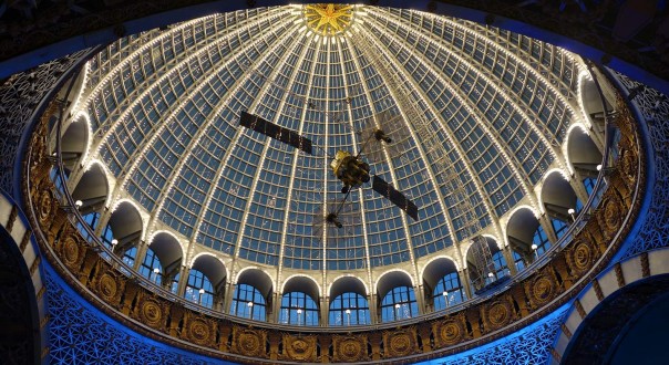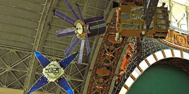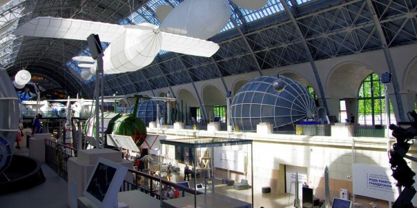 Не забыли создатели экспозиции и о предыдущей авиаэпохе, из которой во многом и вырос мир покорителей космоса. Дань ей отдают висящие под стеклянным потолком схематично изображённые дирижабли и самолёты эпохи Интербеллума.