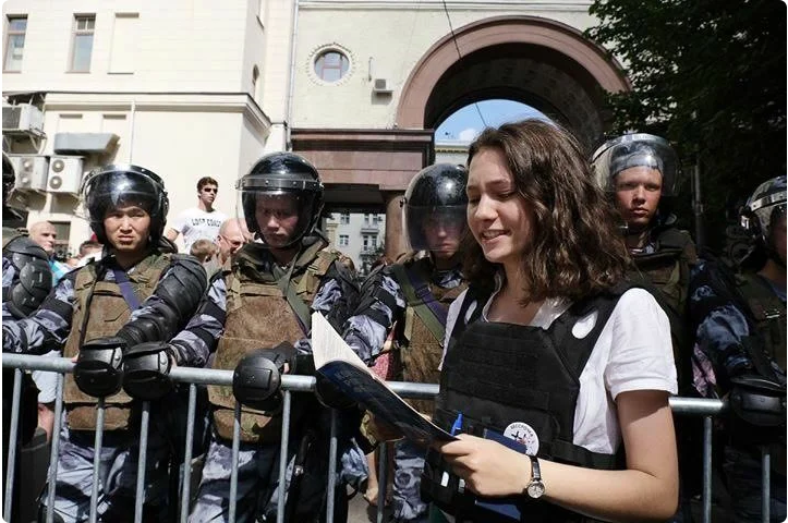 И здесь мы переходим к самому главному. К звездному часу Оли Мисик. К несанкционированному митингу 27 июля. Когда девочка, взяв в руки конституцию, направилась в сторону оцепления ОМОНа и… начала зачитывать им 31 статью.