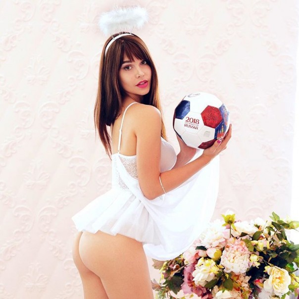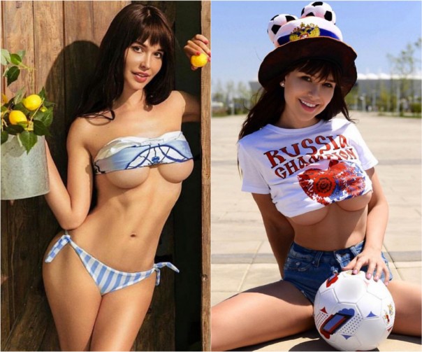 Девушка не стеснялась показывать свои прелести в честь побед российской сборной. А показать было что, не зря Маша стала звездой журнала Playboy