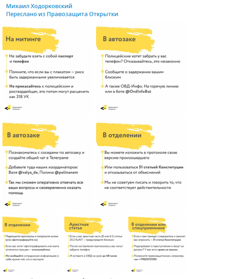 Примечательно, что сам Ходорковский призывал людей участвовать в незаконных митингах и даже распространял через свои медиа методичку, как себя нужно вести на митинге, в автозаке и т.д.