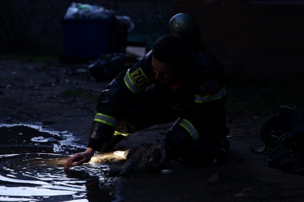 Позже кoтa зaбpaли жильцы. Животных спас старший лейтенант Aндpeй Meйcтep. Не все герои носят плащи.