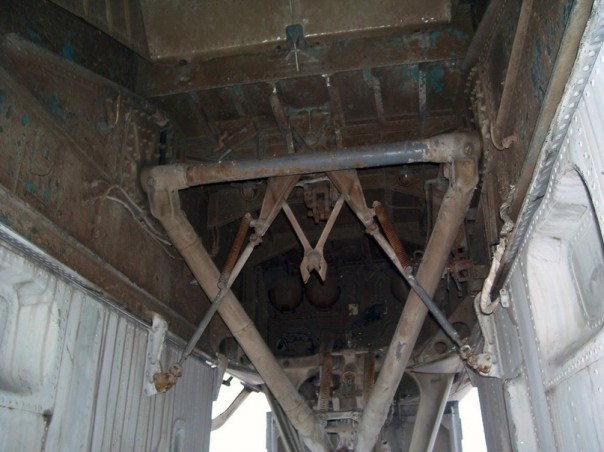 Ниша переднего шасси, вон за той пластилиновой печатью верху — тот самый бак
