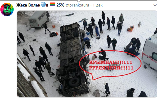 Украинский блогер Вольнов в своем аккаунте Twitter откровенно надсмеялся над жертвами аварии, которая произошла в Забайкалье. Напомним, в аварии погибло 19 человек, 21 пострадали.