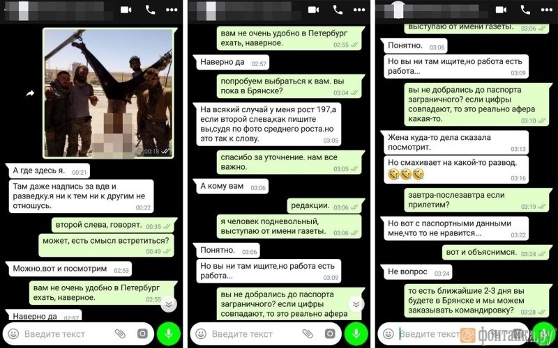 Итак, что же пишет «Фонтанка»? Журналист, не мудрствуя лукаво, сразу же переходит к сути и начинает бомбардировку собеседника острыми вопросами по существу, пытаясь выяснить личные данные, сроки и место прохождения военной службы, подробности поездки в Сирию. Кстати, «изданию известна фамилия Руслана», но почему-то она не называется.