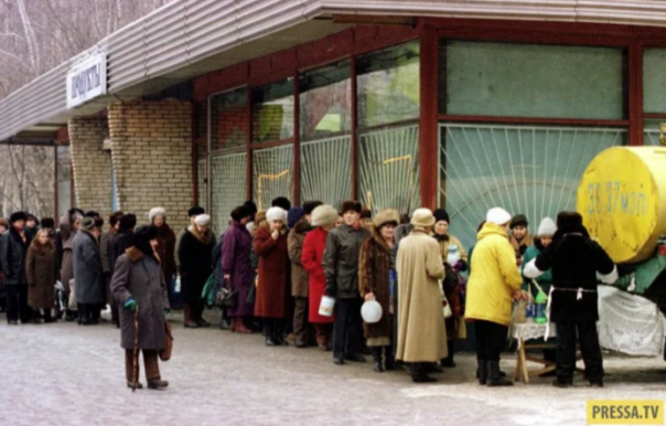 Длинная очередь за молоком, ноябрь 1998 года