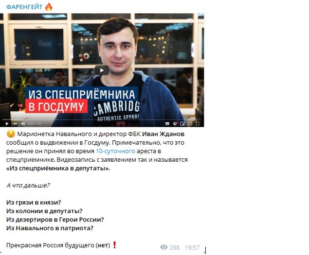 В команде Навального порядочных людей нет – это общеизвестный факт. Рыба, как говорится, гниет с головы, и ФБК тому отличный пример. Сам Навальный – вор и мошенник. Его друзья такие же – у всех рыльце в пушку. При этом они еще и рвутся во власть. Например, Иван Жданов, который собирается выставить свою кандидатуру на выборах в Госдуму в 2021 году. Такое решение он принял после 10 суток ареста, которые ему впаяли за организацию незаконных митингов. Ну что можно взять с такого человека.