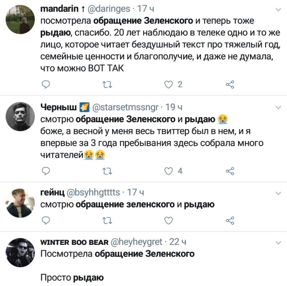 Так произошло и на этот раз: уже с 1 января 2020 года вся свора либеральных деятелей нахваливает новогоднее поздравление президента Украины Владимира Зеленского. Лев Пономарев, Леонид Волков, Евгений Ройзман и прочая нечисть наперебой шпарят восторженные посты в соцсетях, чем приводят в восторг прикормленных хомячков и дешевых ботов. Однотипные комментарии, рассыпанные по соцсетям, наводят на мысль, что написали их под диктовку. Ну, или в соответствии с одной и той же инструкцией. Все как один «смотрят и рыдают».