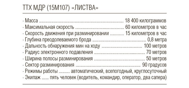 И все-таки даже эту машину нельзя назвать полностью универсальной. Микроволновый передатчик большой мощности может выводить из строя лишь те мины, которые оснащены взрывателями с дистанционным управлением или какими-либо другими электронными системами. А в случае с минами нажимного действия система может оказаться бесполезной, хотя вовремя обнаружит взрывное устройство и даст соответствующий сигнал. Для обезвреживания подобных боеприпасов в экипаж МДР «Листва» включены саперы.