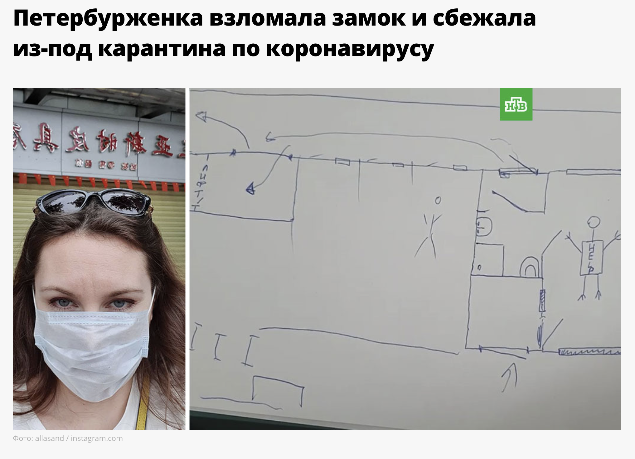 - Жительница Петербурга сбежала из изолированного бокса, куда ее поместили с подозрением на коронавирус. 32-летняя женщина сегодня рассказала, что сбежала еще в пятницу, 7 февраля. Она заявила, что выбралась на свободу благодаря знанию точных наук — петербурженка замкнула электроцепь и взломала замок. Теперь женщина находится дома. По ее словам, из полиции и больницы ей никто не звонит. 32-летняя петербурженка вернулась из Китая в конце января. А через несколько дней у нее заболело горло. Тогда женщина обратилась к врачам, а комиссия из Роспотребнадзора отправила ее на 14-дневный карантин.