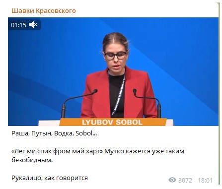 Да, все сейчас только что и делают, как обсуждают лингвистический провал соратницы Алексея Навального Любови Соболь. Она однозначно затмила Мутко с его скромным «лет ми спик фром май харт», и об этом успели сказать уже все Telegram-каналы.