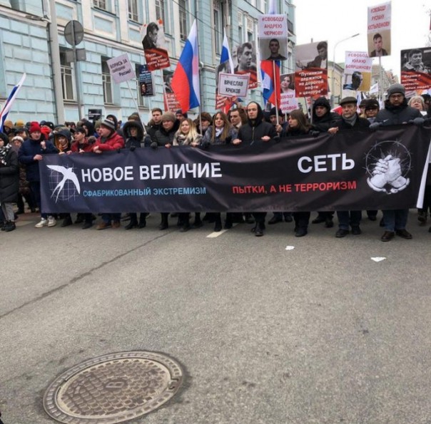 В мероприятии участвовали либеральные антироссийские партейки (вышеупомянутое "Яблоко", ПАРНАС, Либертарианская партия, "Солидарность", "Демократический выбор" и др.), ультрарадикальная Ассоциация народного сопротивления, "Декоммунизация", новые карликовые протестные сообщества (типа "Молодёжи Москвы" и "Метропикета"), наци-бандеровцы, троцкисты, анархисты, исламисты, крымскотатарские сепаратисты, неоязычники, феминистки, ЛГБТ-активисты, зоозащитники, веганы и прочее в том же духе. Отдельные группы с плакатами подвозили на акцию микроавтобусами, их прозвали "маршрутками Немцова". Заявленная повестка: "Против путинских поправок в Конституцию России; Против узурпации власти; Против политических репрессий и политического преследования; За сменяемость власти в России". То бишь про самого Немцова - ни слова.