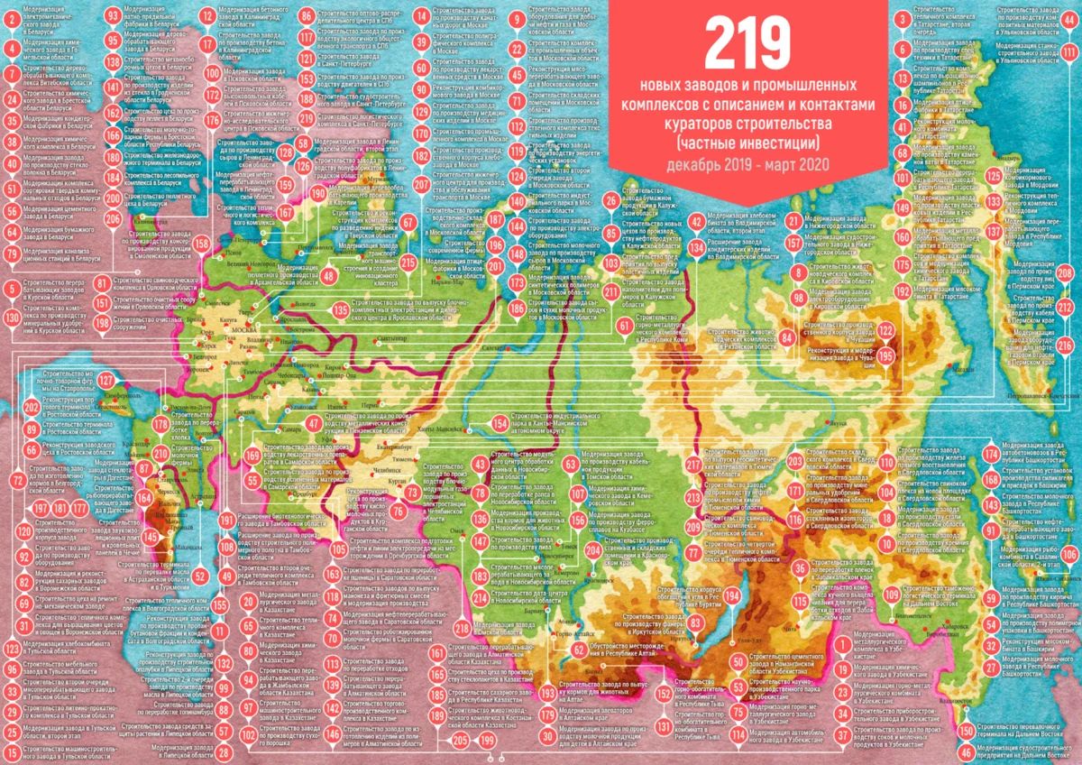 Мне по подписке на один ресурс, который занимается агрегацией проектов ежеквартально приходит карта строящихся предприятий. Вот она: