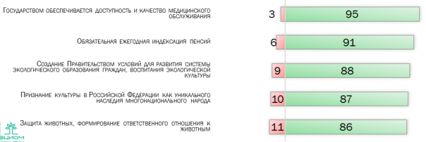 Как и неделю назад, государственное обеспечение доступности и качества медицинского обслуживания считают важным абсолютное большинство россиян (95%), сообщают социологи.