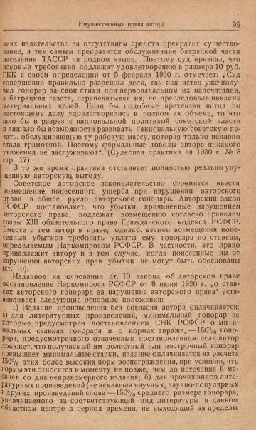 «Суд совершенно правильно разрешил дело, так как истец уже получил гонорар за свои стихи при первоначальном их напечатании, а батрацкая газета, перепечатывая их, не преследовала никаких материальных целей. Если бы подобные претензии истца по настоящему делу удовлетворялись в полном их объёме, то это шло бы в разрез с национальной политикой советской власти и лишало бы возможности развивать национальную советскую печать, обслуживающую ту рабочую массу, которая только недавно стала грамотной. Поэтому формальные доводы автора никакого уважения не заслуживают.».