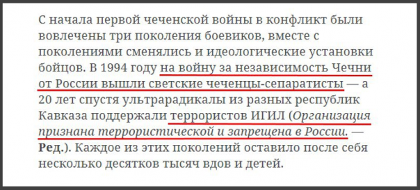 Причём когда креаклы делают это, то тупо палятся, называя террористов «чеченцами-сепаратистами», как было принято в методичке западных СМИ.