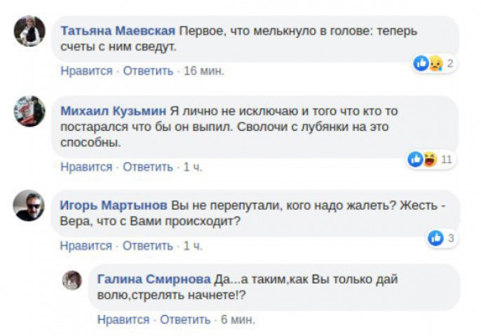 Журналист Андрей Медведев: "Почитал, что пишут о Сергее Захарове клиенты компании, где он работал курьером. Добрый. Вежливый. Если приезжал вечером, то звонил на телефон, а не в дверь, чтобы детей не будить. Всегда продукты аккуратно упакованы. Никогда не раздражался. Было приятно с ним поговорить. Тщательно складывал замороженные продукты, чтобы не оттаяли. Было приятно видеть в смс, что доставку делает Сергей. Люди совершенно искренне пишут, что шокированы смертью Сергея. Пишут о нём, как о человеке близком. Пишут о его гибели, как о личной беде. Люди просят реквизиты карты, чтобы помочь семье. Обычный русский мужик, трудяга, делал не очень заметную, не сильно денежную работу (в отличие от актера), и этой своей работой он приносил людям огромную радость. А ещё, пока был карантин, вот такие простые курьеры кормили людей. Сергей Захаров колесил по пустой Москве, возил продукты. Не знаю, любил ли Сергей свою работу. Но, судя по отзывам, людей он точно любил... Однако, думаю, что ближайшие дни прогрессивная общественность будет обсуждать вовсе не гибель простого дядьки из Рязани. А трагическую трагедию "великого русского актёра", которого сгубил алкоголь. Но, будут рассуждать, пил он, конечно, потому что невозможно иначе быть и жить тонко чувствующему человеку в этой бездарной стране. А как иначе? Пил в знак протеста, практически. Более того, будут писать и говорить, что его спровоцировали. Подставили. Вспомнят стихи, вспомнят все его слова, хоть каким-то боком относящиеся к политике. Найдут сто оправданий и объяснений. Услышим, что надо простить. Мы увидим такой русский #alkolivematters. О чём точно не будет говорить прогрессивная общественность, так это о Сергее Захарове. Как жил, о чём мечтал, как непросто трудился, как скучал по семье. Как семья будет жить без отца, без кормильца. Хотя в нынешней ситуации только это имеет значение. И больше ничего".