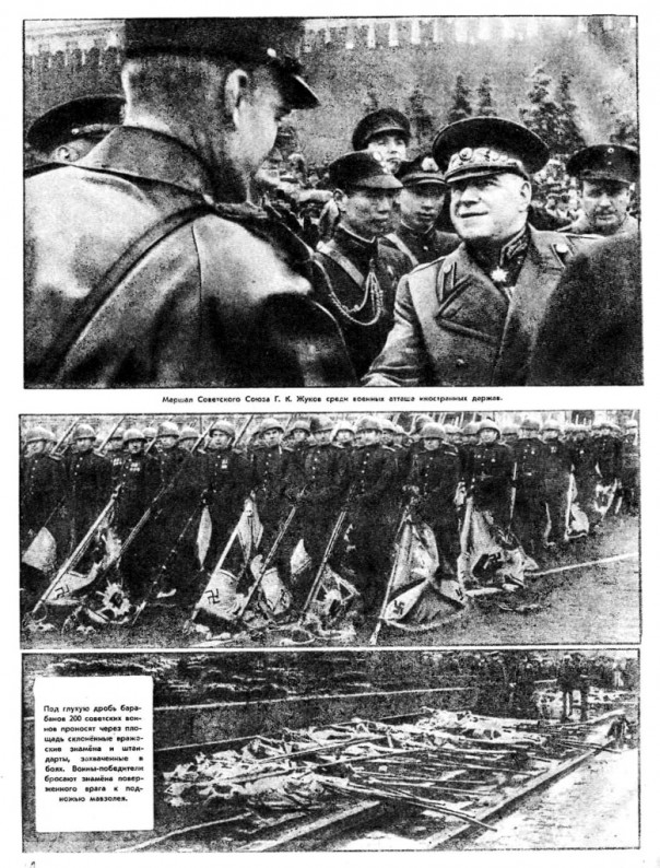 «Огонёк» подчеркнул, что Красная Армия отправила на парад лучших военнослужащих, защищавших московские, ленинградские, сталинградские, севастопольские стены, украинские степи, белорусские леса, скалы Заполярья, финские болота. Парад на Красной площади увенчал подвиг советских военнослужащих, советского оружия.