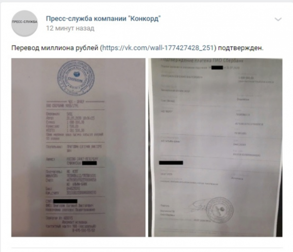 В ФБК же попытались откреститься от тонкого троллинга петербургского бизнесмена. В частности, директор НКО Навального Иван Жданов сообщил, что никакого перевода в миллион рублей на счёт организации не поступало. Топорным враньём он лишь закопал свою контору и её создателя ещё глубже. Пресс-служба «Конкорда» оперативно ответила на очередную ложь ФБК, опубликовав документальное подтверждение перевода в миллион рублей на счёт организации Навального.