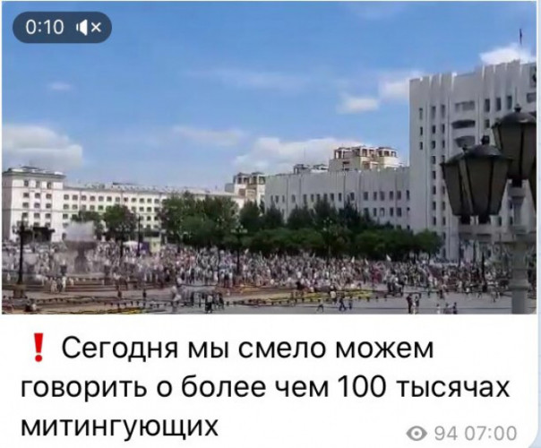 Журналист Роман Голованов: "Два часа митинга в Хабаровске. Промежуточный итог. Первое. Дороги перекрыты. Машины еле-еле продираются через толпу. Многие автомобилисты уже содрали наклейки «Я/Мы - Фуркад». Понимают, что к местному недовольству притягивают московские лозунги. Второе. В город приезжают варяги-оппозиционеры. Лидеры и заводилы протеста. Они начинают кричалки против президента, требуют свободы московским активистам-политикам. Какое отношение они имеют к Хабаровску? Третье. Это уже не стихийный митинг. На улицах раздают воду и семечки. Кто их купил? Кто за этим стоит? Кто организовал волонтёров на шествие? Тут есть чёткая структура, которую мы и увидели. От заводил до проводников толпы".