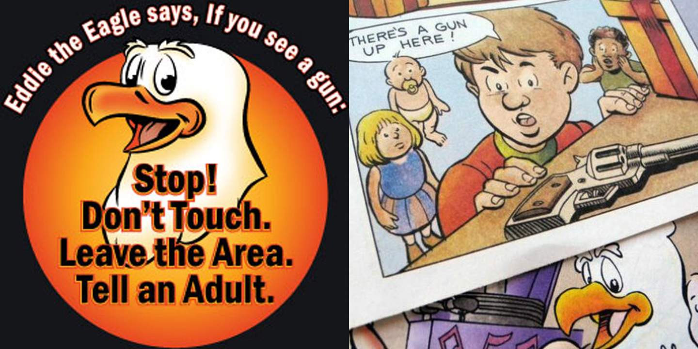 Предписываемые действия: «не прикасайся к оружию, выйди из комнаты, где оно лежит, позови взрослого». В нескольких штатах обучающие ролики включили в школьную программу, и всё вроде шло замечательно… Однако через несколько лет выяснилось, что эффективность программы для детей четырёх-шести лет была фактически нулевая: после просмотра видеокурса они продолжали воспринимать оружие как игрушку.
