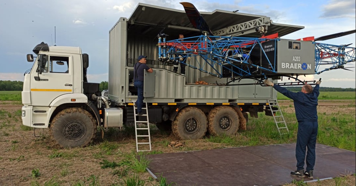 По его словам, дрон может преодолевать расстояние до 300 километров при температуре от минус 40 до плюс 40 градусов по Цельсию, а максимальный перевозимый вес составляет до 300 килограммов. Размер дрона BRAERON — 5 на 3 метра, он работает на двигателях внутреннего сгорания и заправляется бензином Аи-95. Развертывание и прогрев беспилотника занимает около 60 минут, вертикальный взлет не требует особых условий для подготовки к полету, а для посадки ему нужна только ровная площадка 10 на 10 метров. Источник