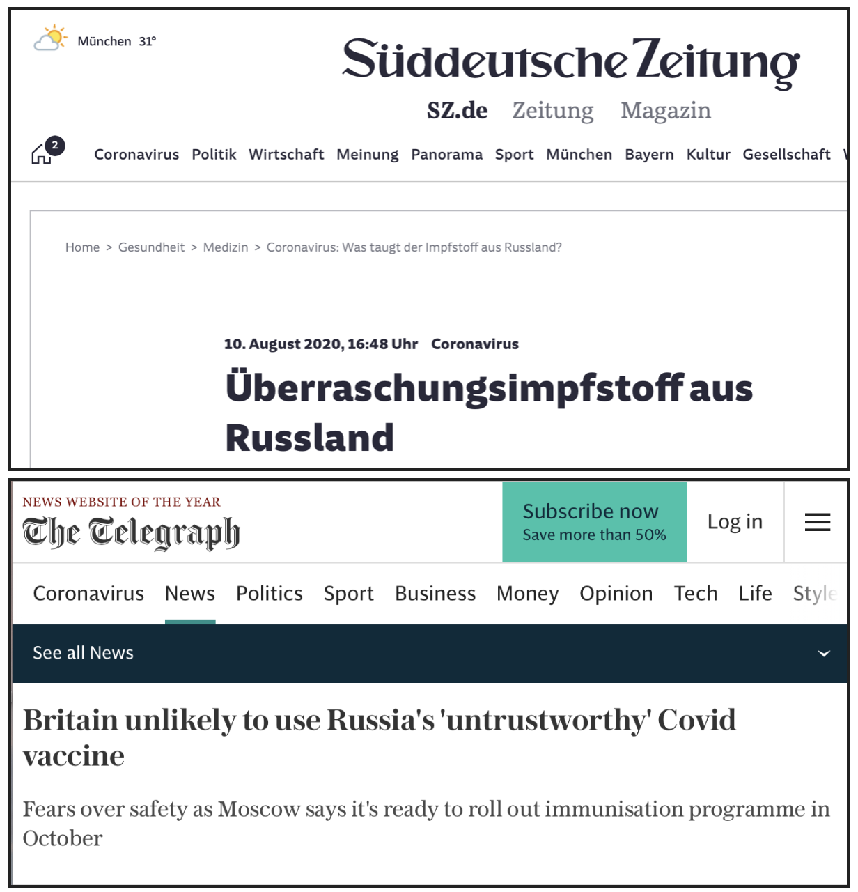 Süddeutsche Zeitung (Германия): Коронавирус: неожиданная вакцина из России. Автор рассказывает о российском варианте вакцины, призванной победить коронавирус. Высказывается ряд сомнений: как могла Россия обойти множество конкурентов? Например, труды ученых Оксфордского университета закончат испытывать не раньше осени. В России же вакцина уже начинает поступать госслужащим и врачам.