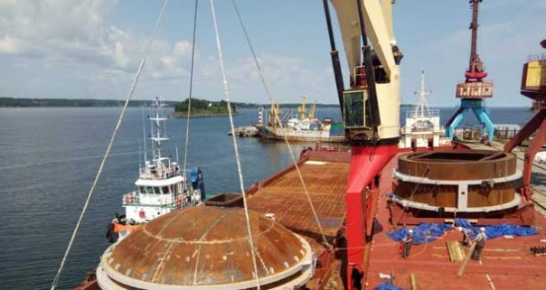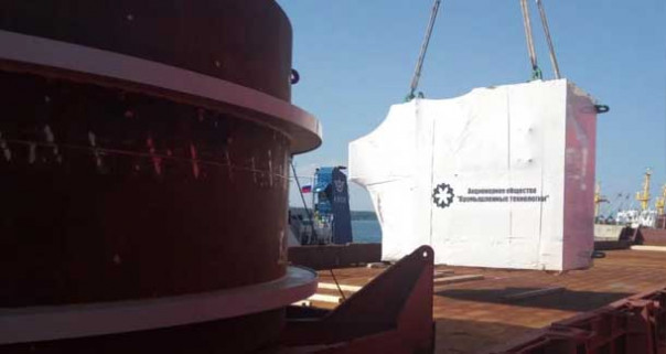 1. Начнем с того, что стартовый стол для ракеты «Ангара» закончил свое путешествие по Северному Морскому Пути, и прибыл в порт Советска Гавань. Здесь эта гигантская конструкция перегружена на баржу, и дальше предстоит путешествие по рекам Амур и Зея до космодрома Восточный.