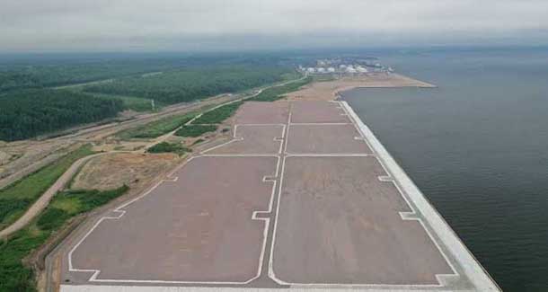 В марте 2020 года было сделано шпунтовое ограждение и сформировано откосное берегоукрепление. Всего было забито 2642 шпунта Ларсена.К июню все работы по созданию искусственных земельных участков терминала были завершены. Площадь созданной территории превысила 47 га.
