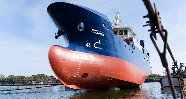 В Калининградской области спущен на воду новый рыболовный траулер «Всеслав» проекта 174610