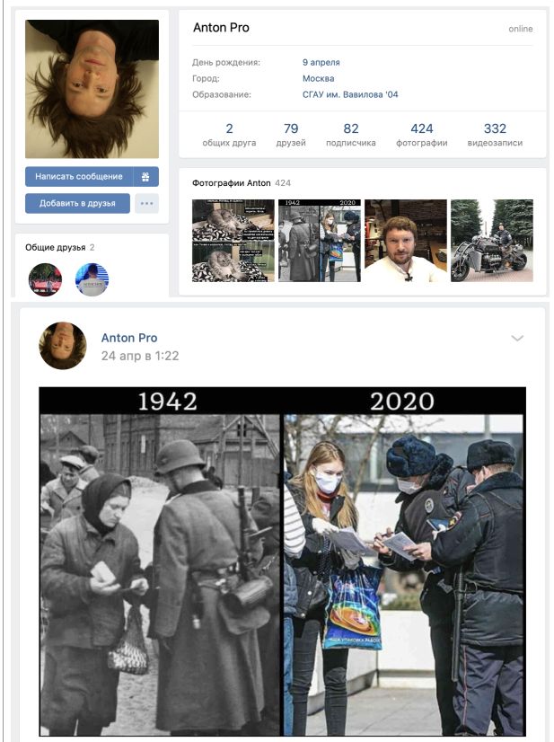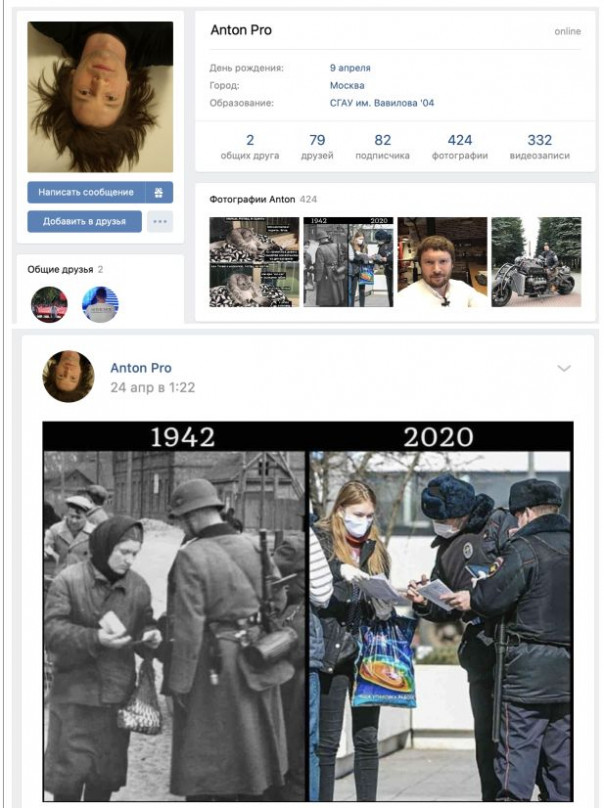 При этом гражданин ненавидит "ботоксную вертикаль власти", сравнивает полицейских с фашистами.
