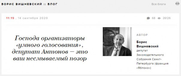 На «Яблоко» рассчитывать не приходится и в этот раз: «Умное голосование» от ФБК протащило в депутаты таких кандидатов, за которых стыдно даже либералам. По крайней мере, матерый питерский «яблочник» Борис Вишневский так и написал публично на страницах либерального «Эха Москвы».