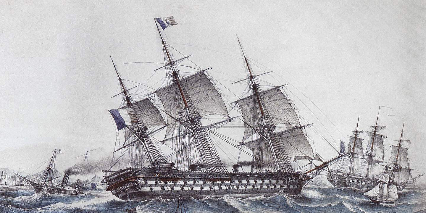 Что мы видим? Во-первых, только два винтовых корабля справились с течением Босфора, причём, ведя на буксире ещё кого-то. Остальные же суда даже без «нагрузки» с течением справиться не смогли и стали ждать попутного ветра. К слову, это форсирование для «Наполеона» не прошло без последствий — он так основательно посадил машины, что был отправлен на ремонт в Тулон.