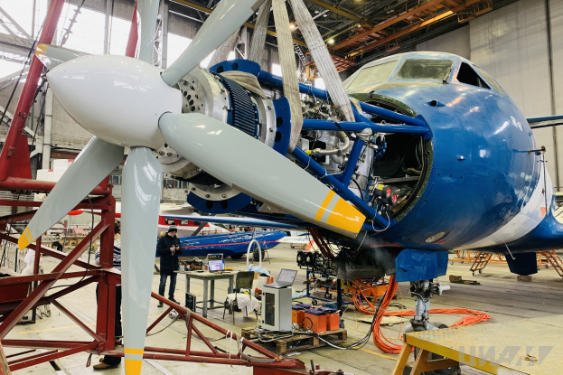 «Сейчас коллеги из СибНИА укрепляют носовую часть летающей лаборатории — обтекатель, мотораму, передний шпангоут. Также они убрали третий средний двигатель АИ-25. Вместо него будет установлен турбовальный двигатель ТВ2-117 с электрогенератором. Он наиболее прост и надёжен в эксплуатации», — рассказал Варюхин.