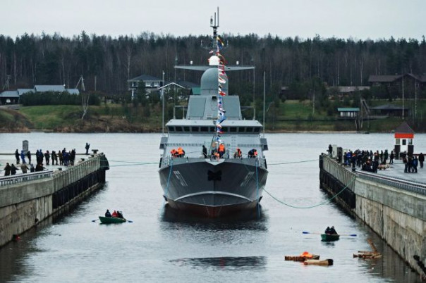 Спуск на воду первого серийного малого ракетного корабля "Тайфун" проекта 22800
