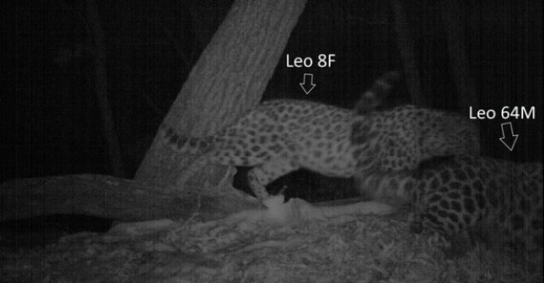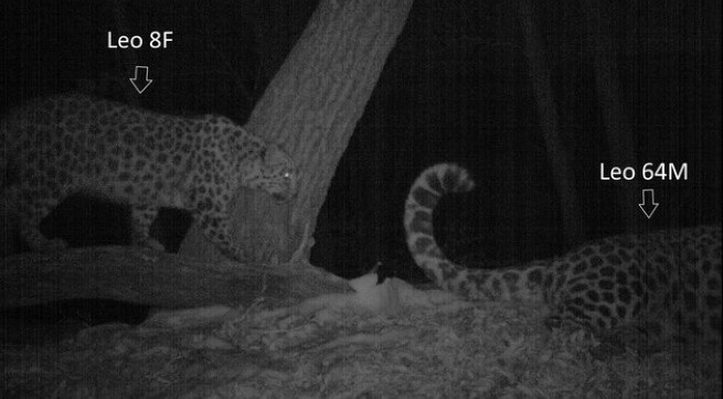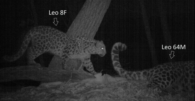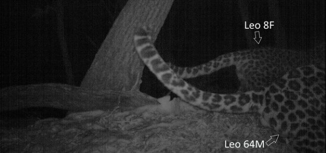 Исследования дальневосточных леопардов показывают, что брачные игры – основная причина, по которой взрослые разнополые особи могут находиться вместе, что и фиксируется фотоловушками. В период течки поведение самок меняется: они чаще оставляют запаховые метки, сообщая о готовности к спариванию, а при встрече с самцом проявляют игривое поведение. Самцы же принимают эти сигналы, тоже активно метят территорию. Так леопарды находят друг друга.